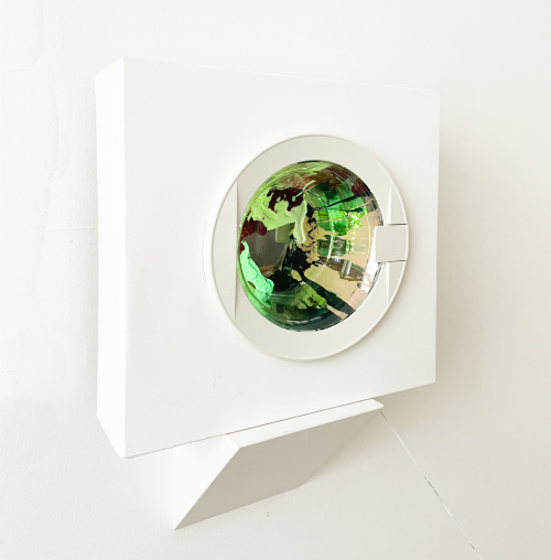 Wunschmaschine 2.0 #3, 50 x 50 x 15 cm, Oil paint, canvas, wood, metal, LEDs, 2019