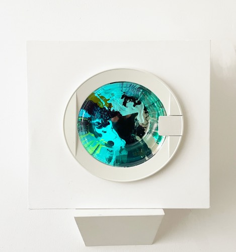 Wunschmaschine 2.0 #2, 50 x 50 x 16cm, Oil paint, canvas, wood, metal, LEDs, 2018